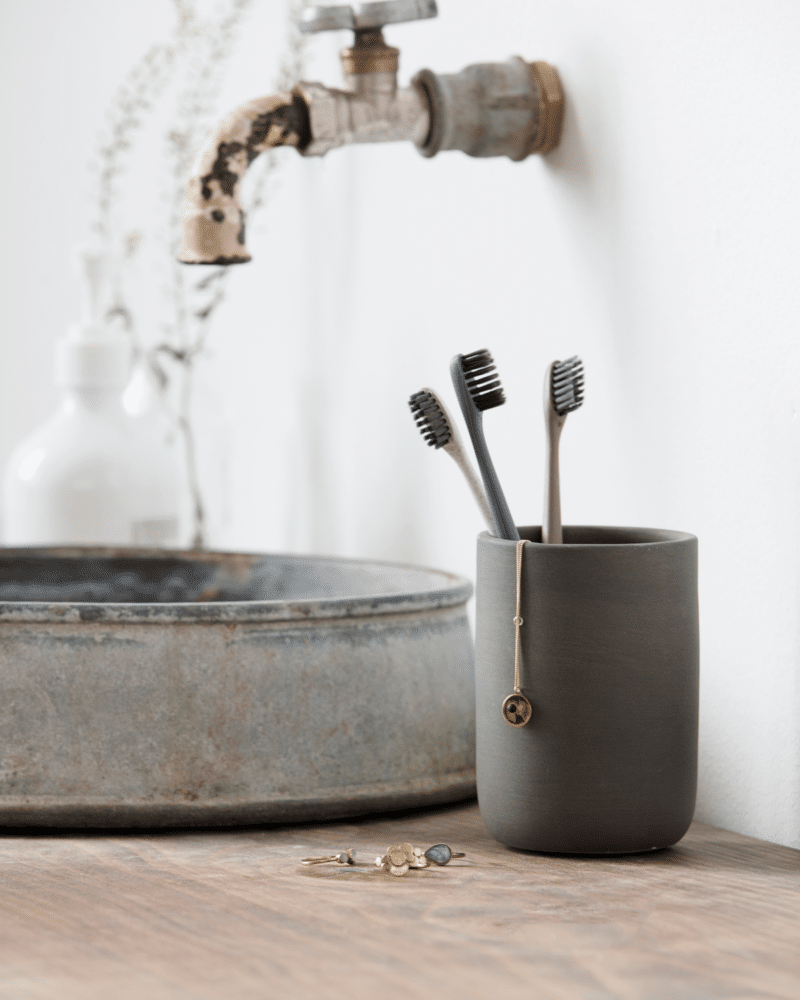Ikke flere tandbørster i et væld af pangfarver, der ikke passer ind på badeværelset. Dette sæt med 3 tandbørster fra Meraki passer perfekt ind i indretningen på badeværelset takket være de douchede grå, hvide og bordeaux farver. De er lavet af et materiale med hvedestrå, mens selve børsterne er i nylon. Hårdhed: blød/medium.